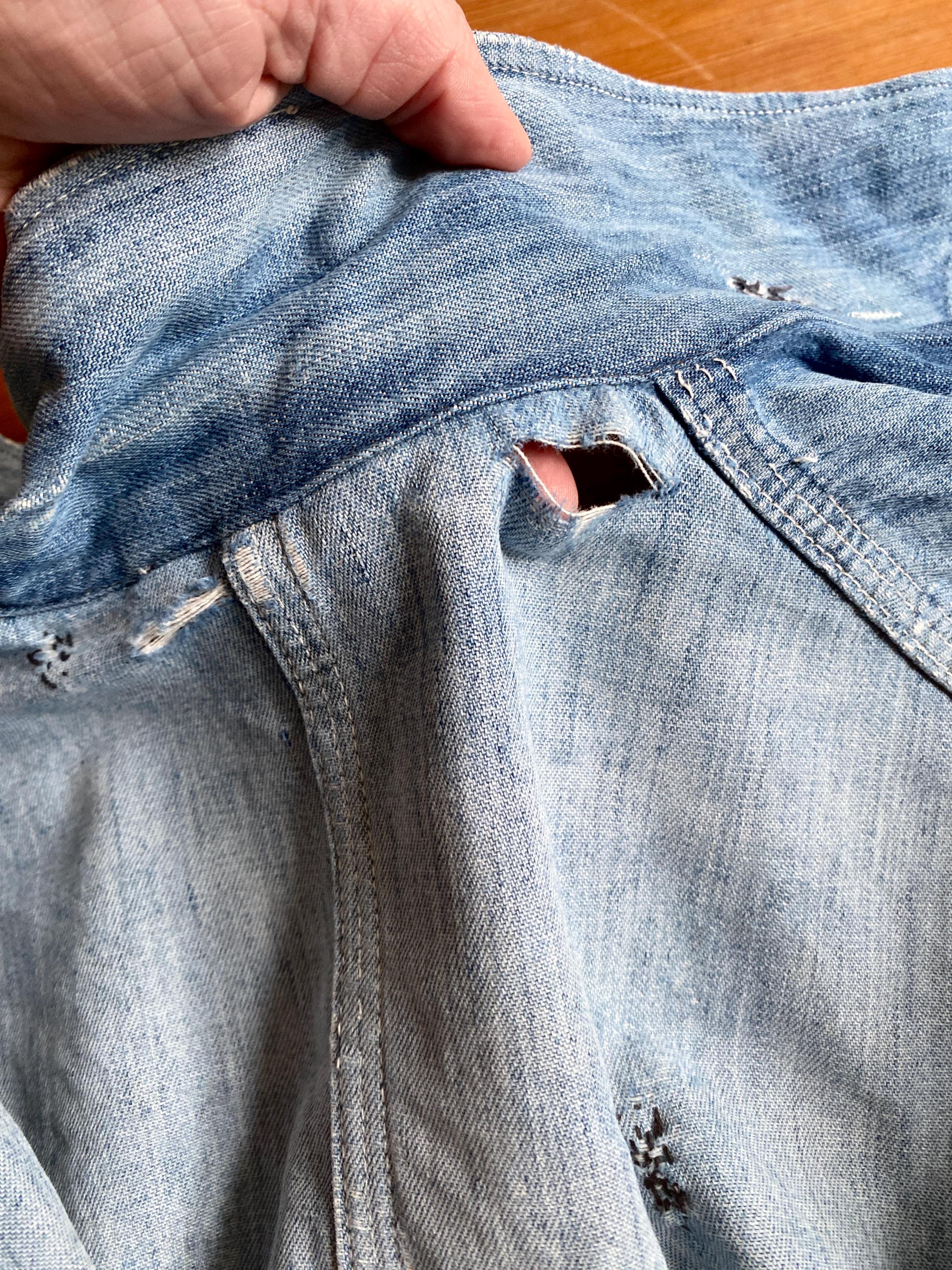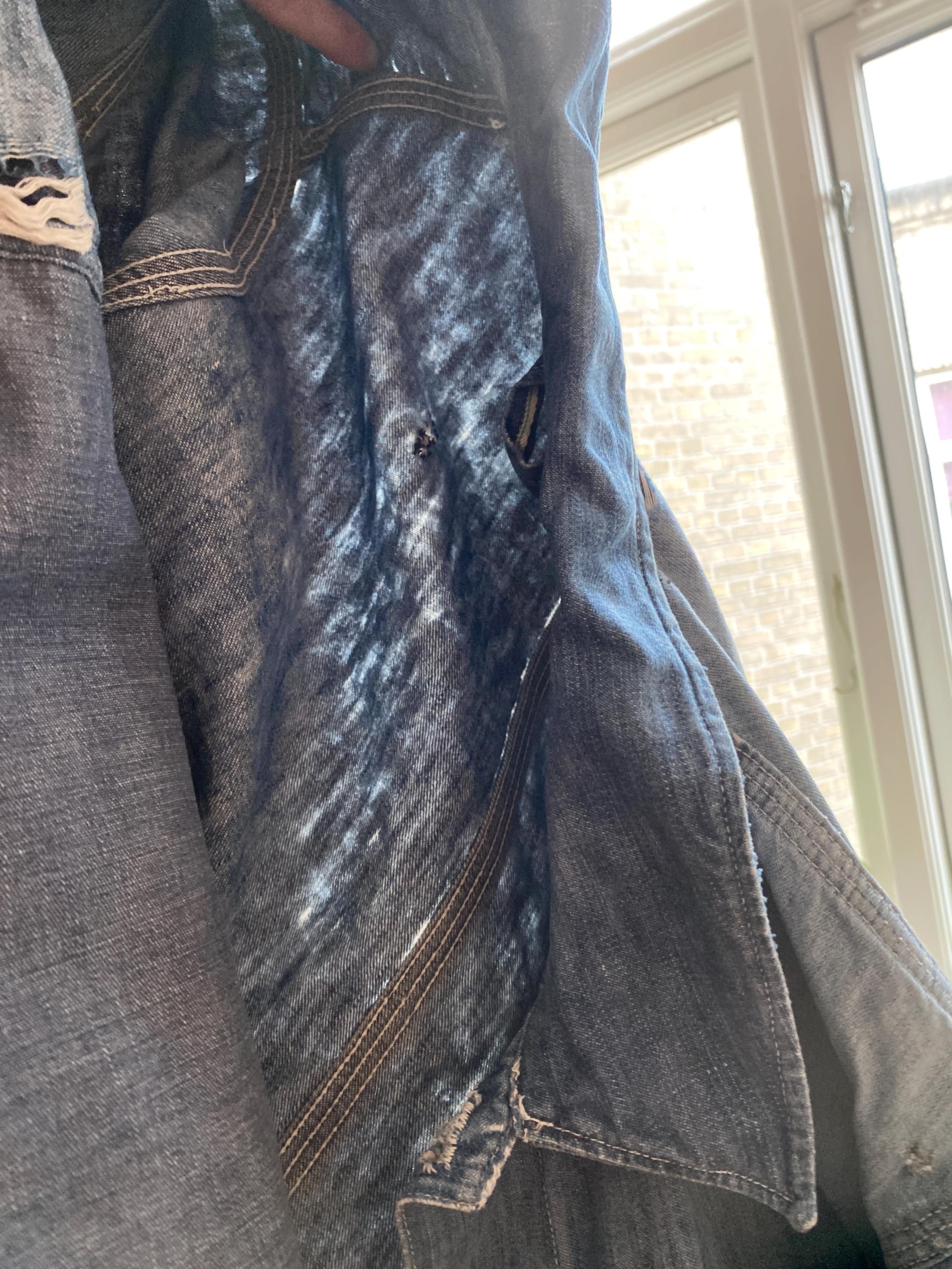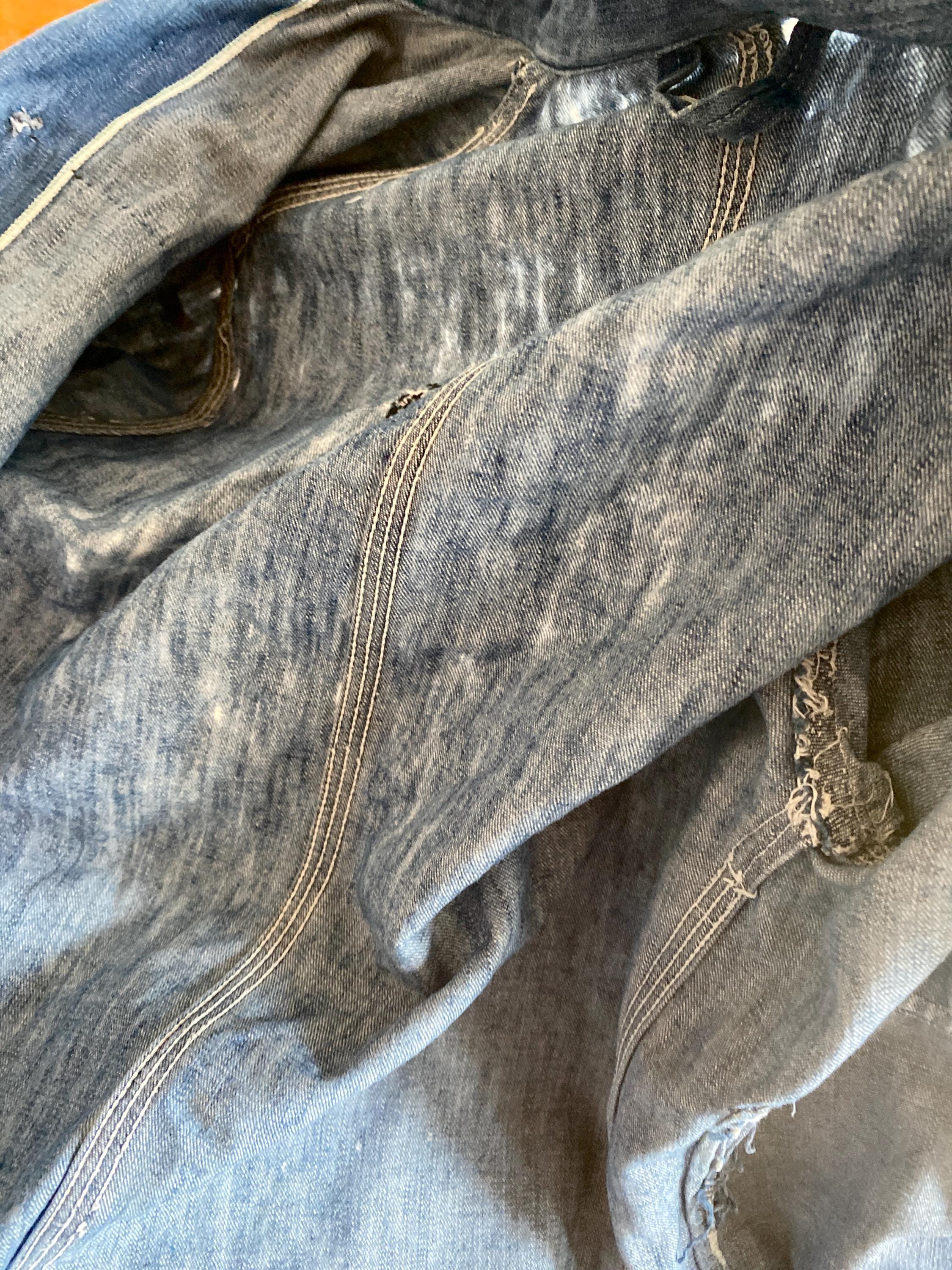 *Used vintage condition! Has some staining and repairs. The fabric on the back is paper thin and very worn (see pictures). It's still wearable but need further repair especially to strengthen the back. It would be a great inspiration or display piece. SOLD AS IS.