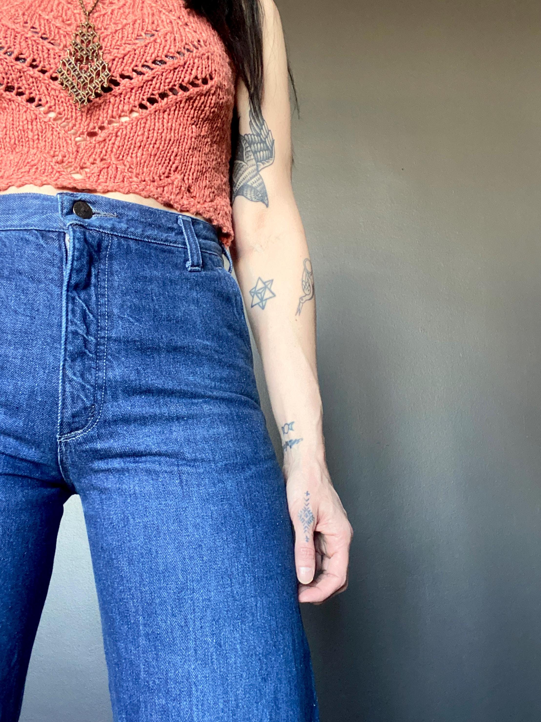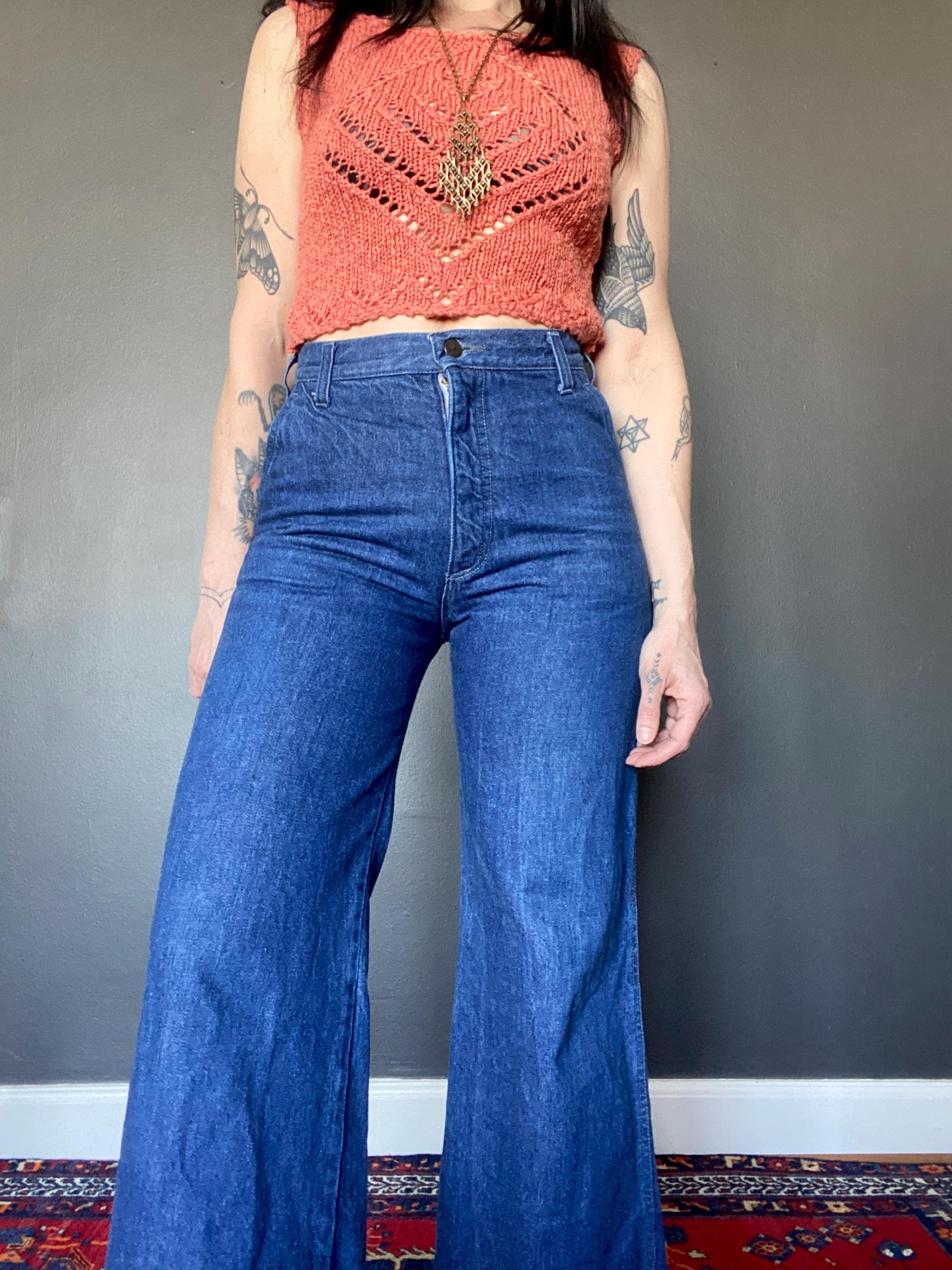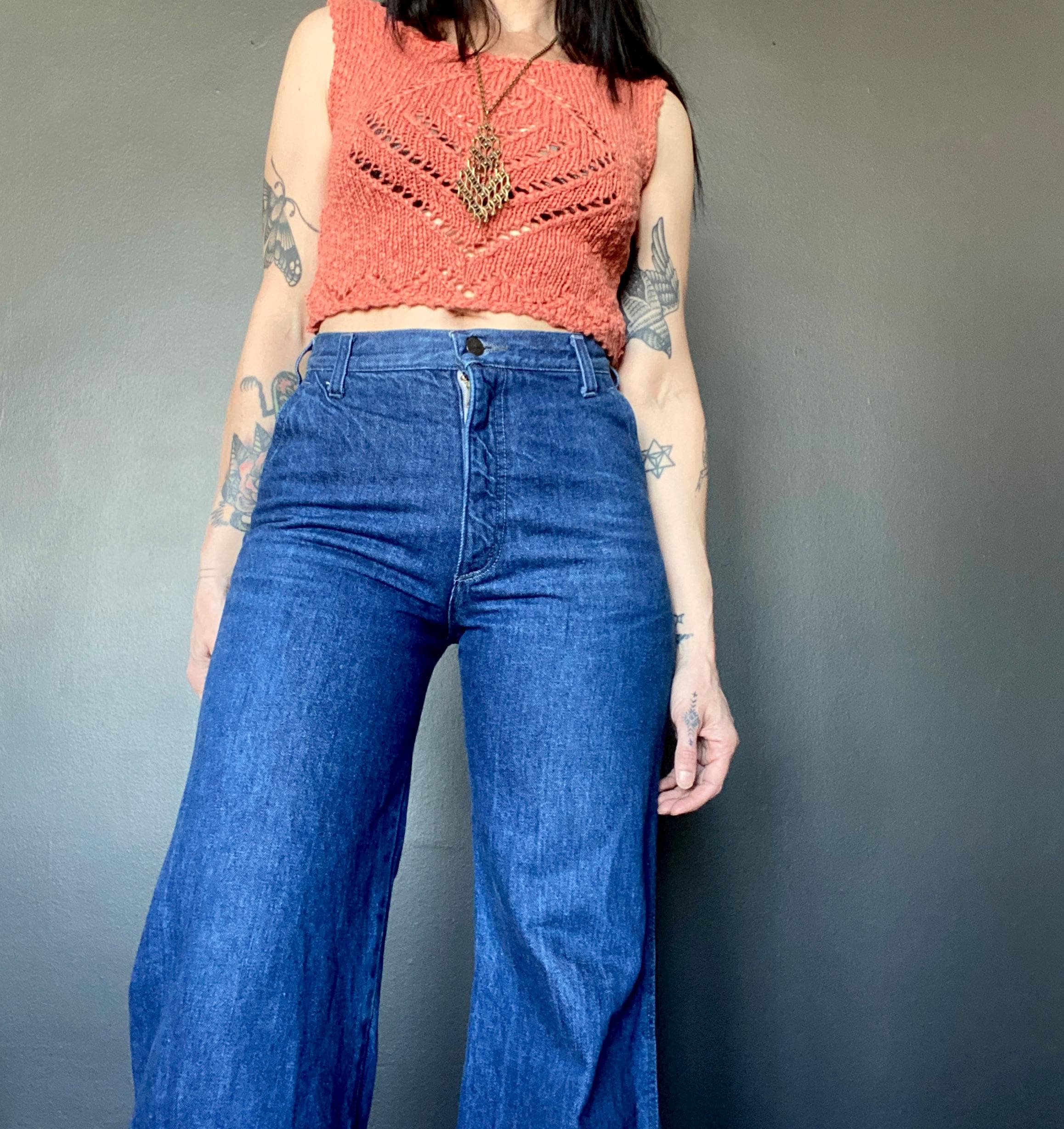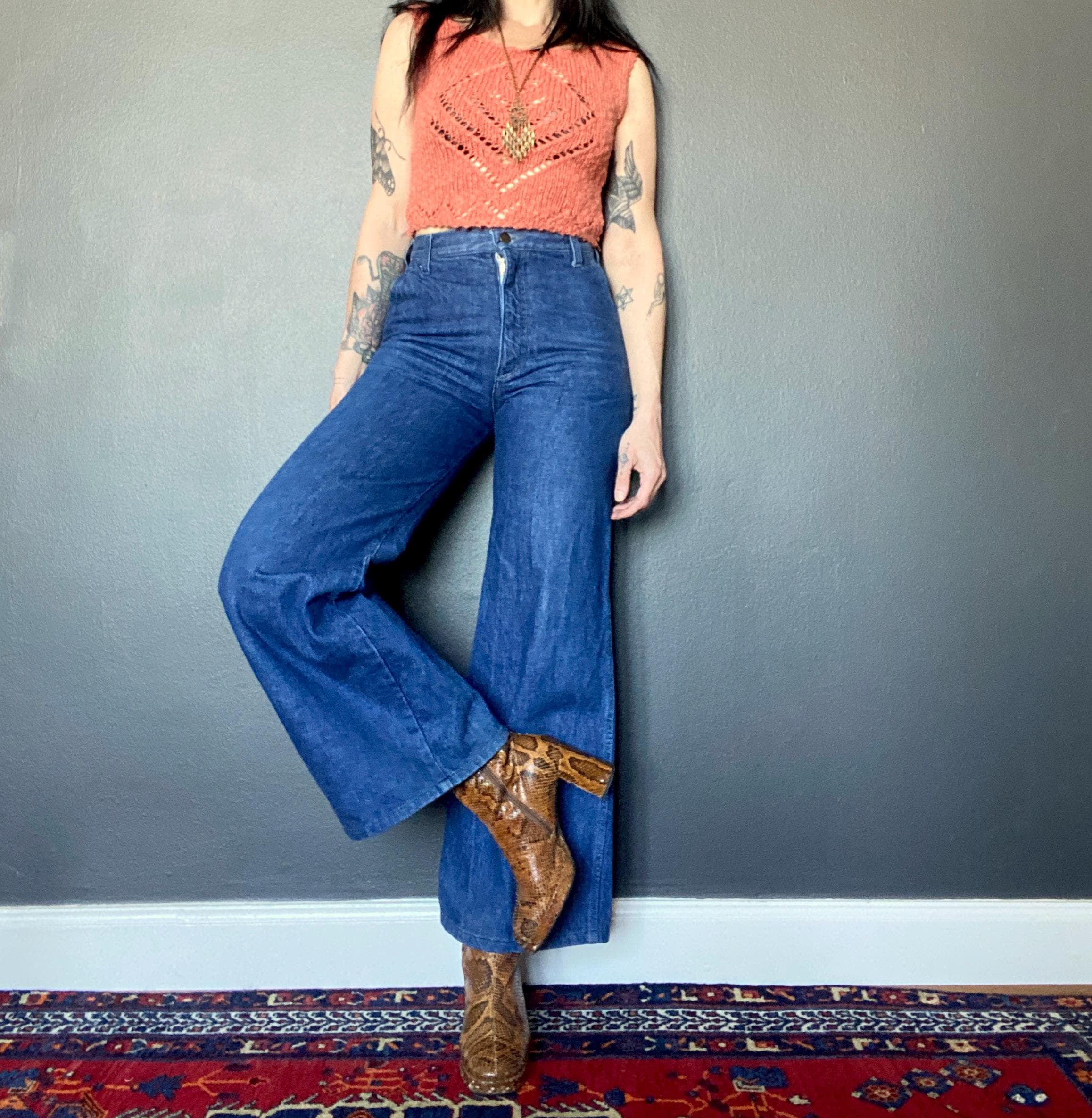 1970s flared jeans.
