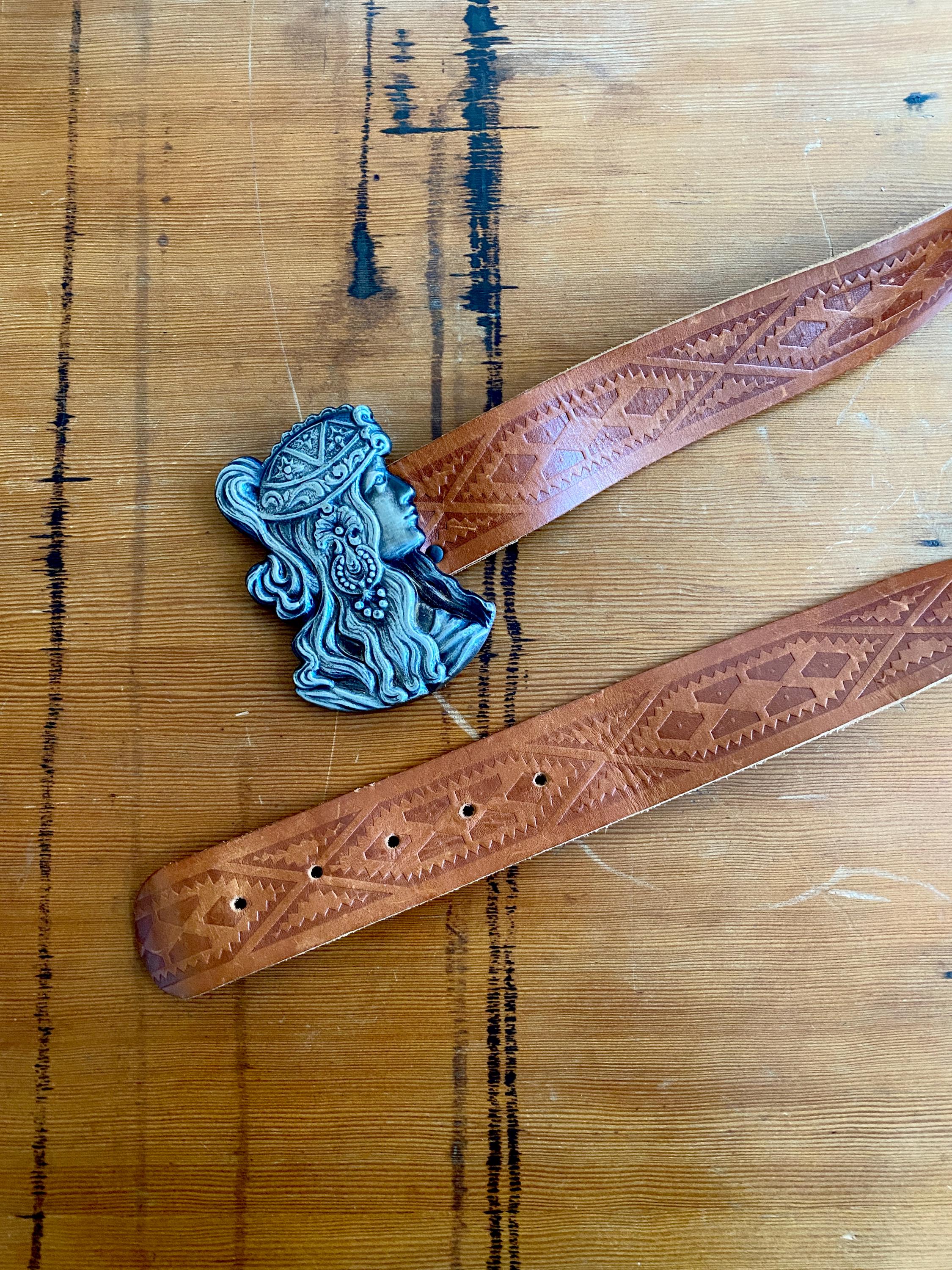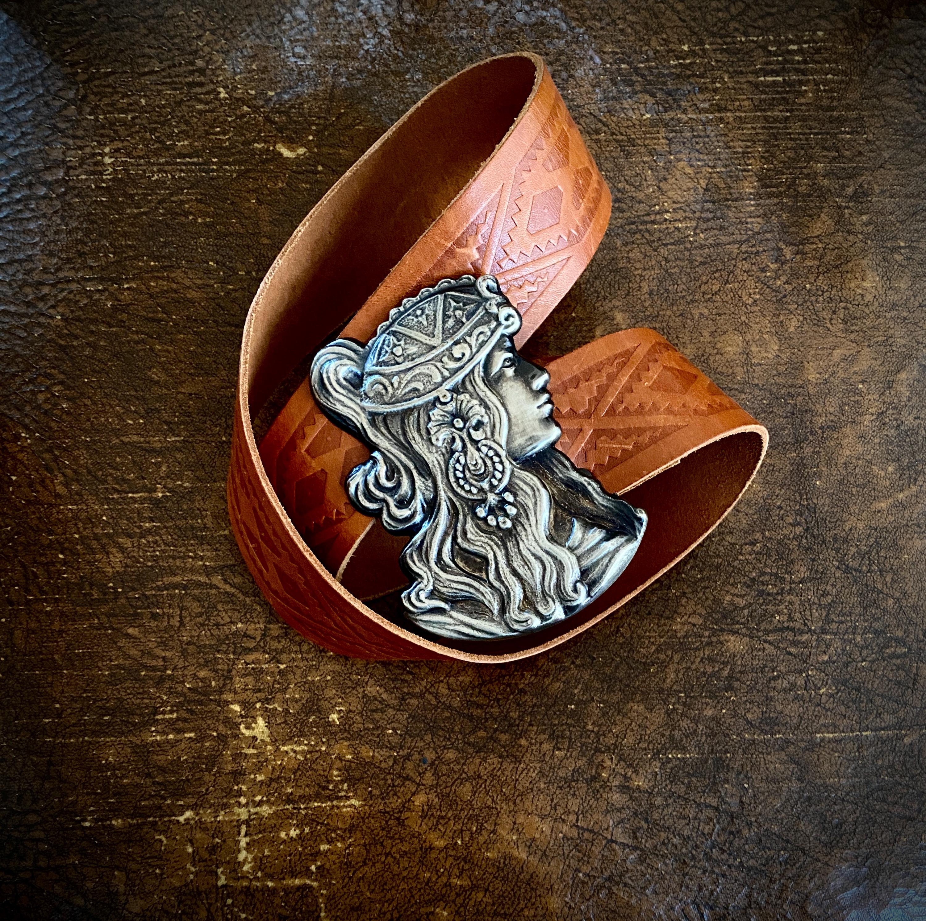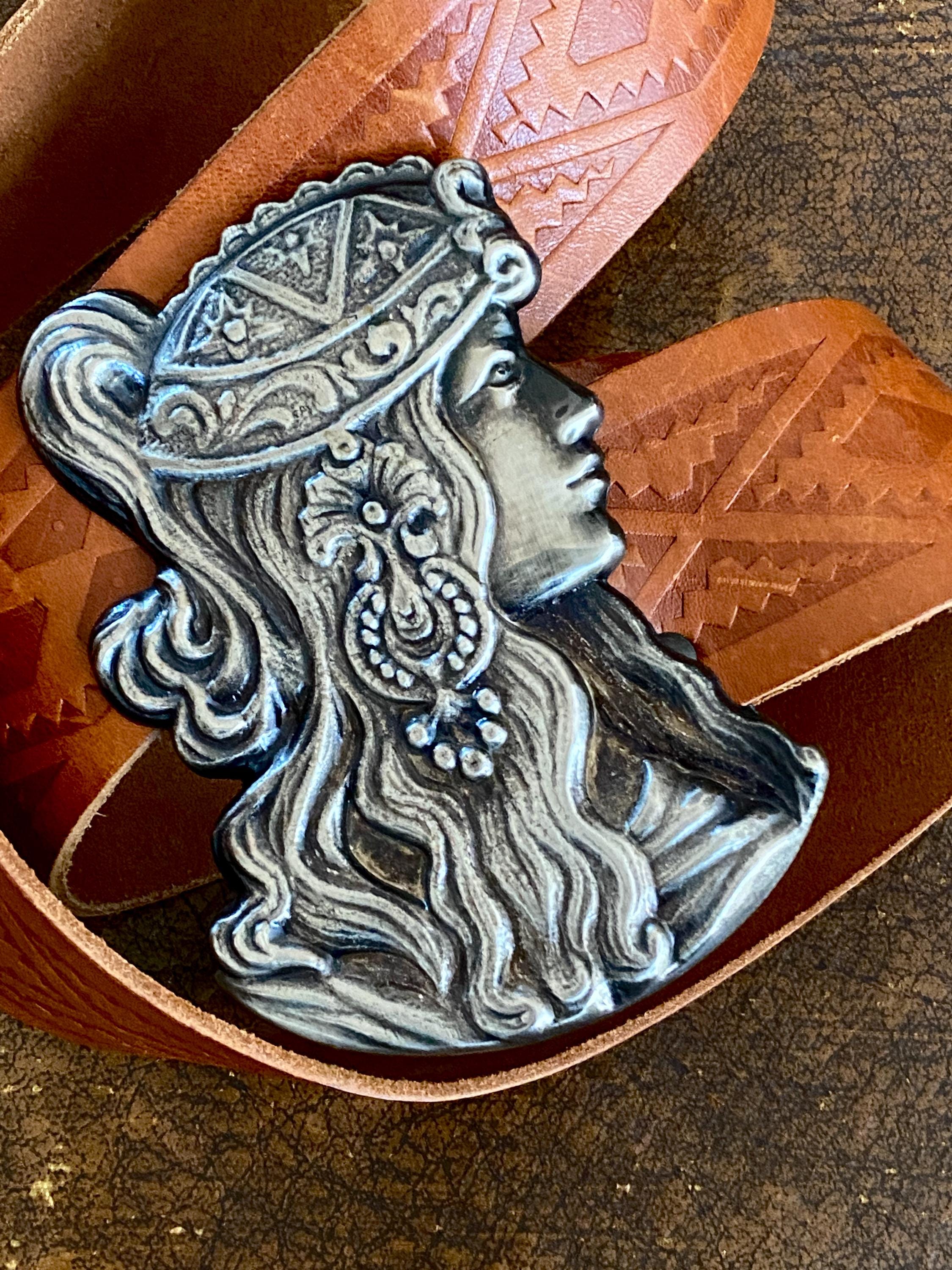 *Large Alphonse Mucha like metal belt buckle