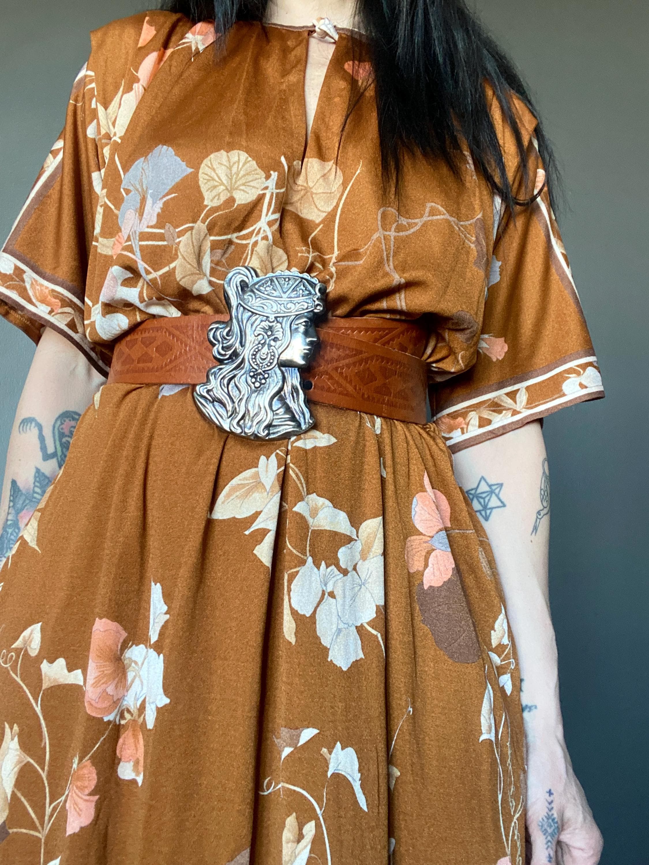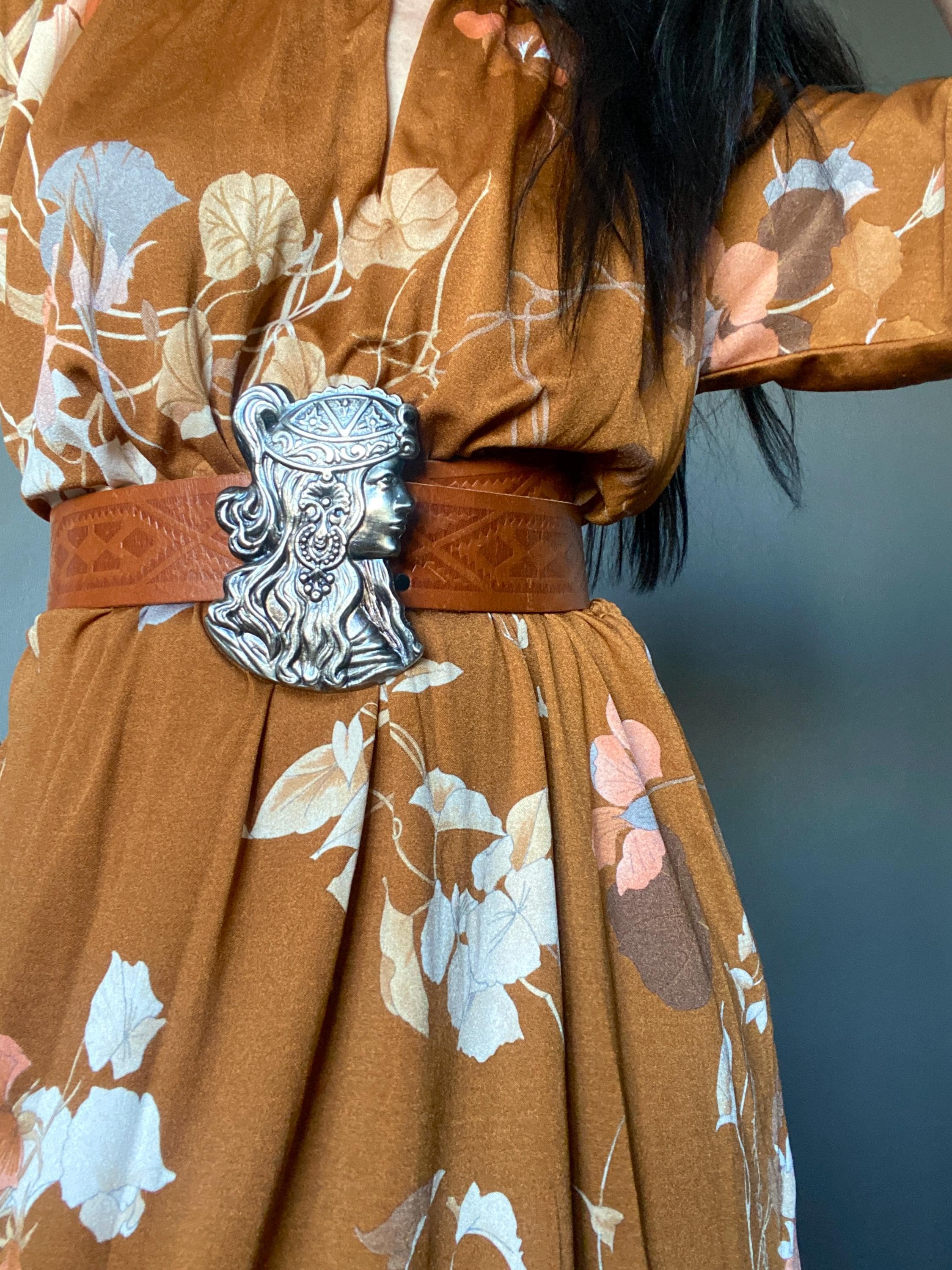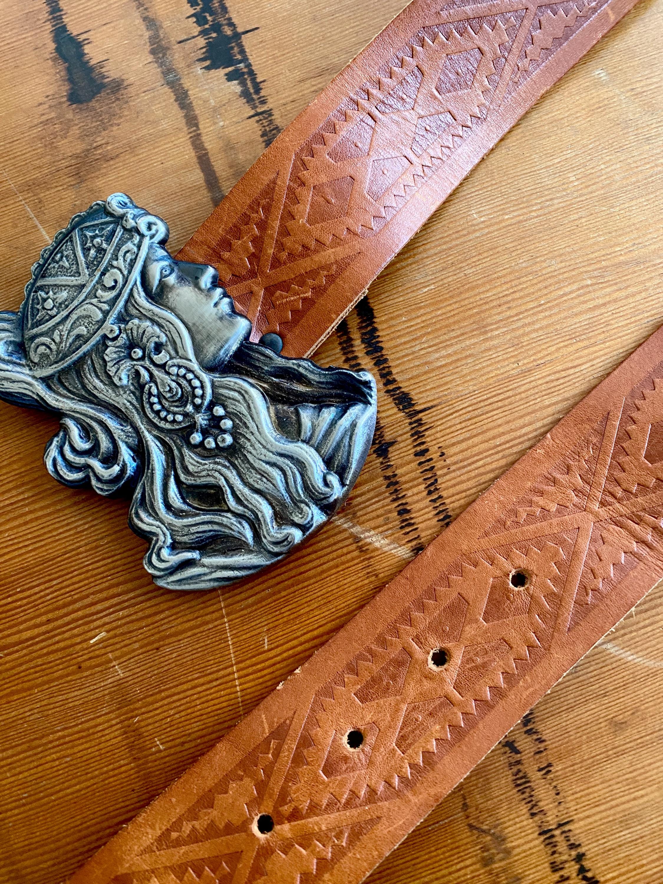 *Large Alphonse Mucha like metal belt buckle